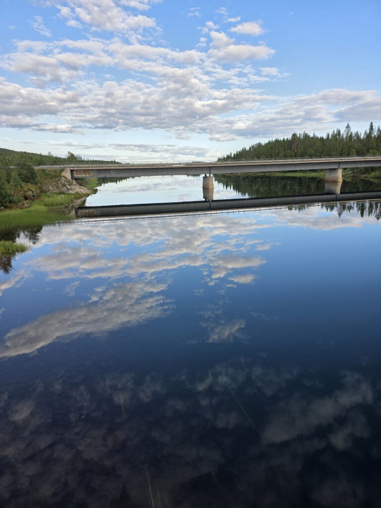 Sind mittlerweile durch die Wälder über den Polarkreis bis Lappeasuando gekommen, 150 km unterhalb der schwedisch-finnischen Grenze. Weder „Waldgrabsch“ noch Trolle haben sich gezeigt. Morgen wollen wir Tromsø erreichen.