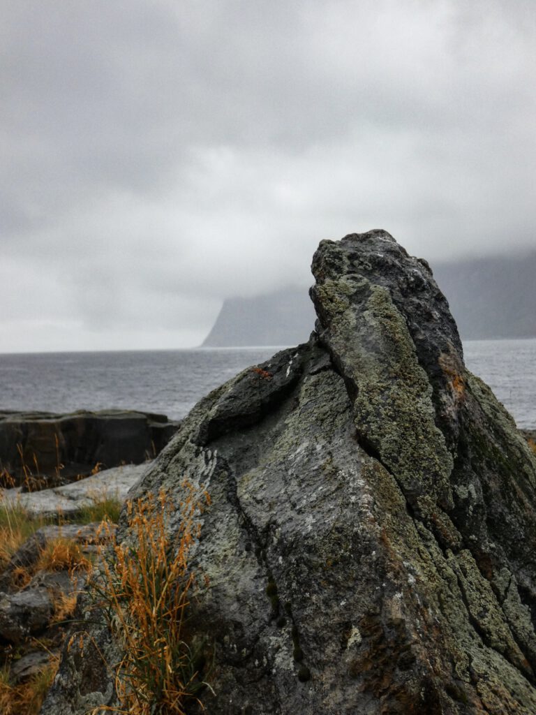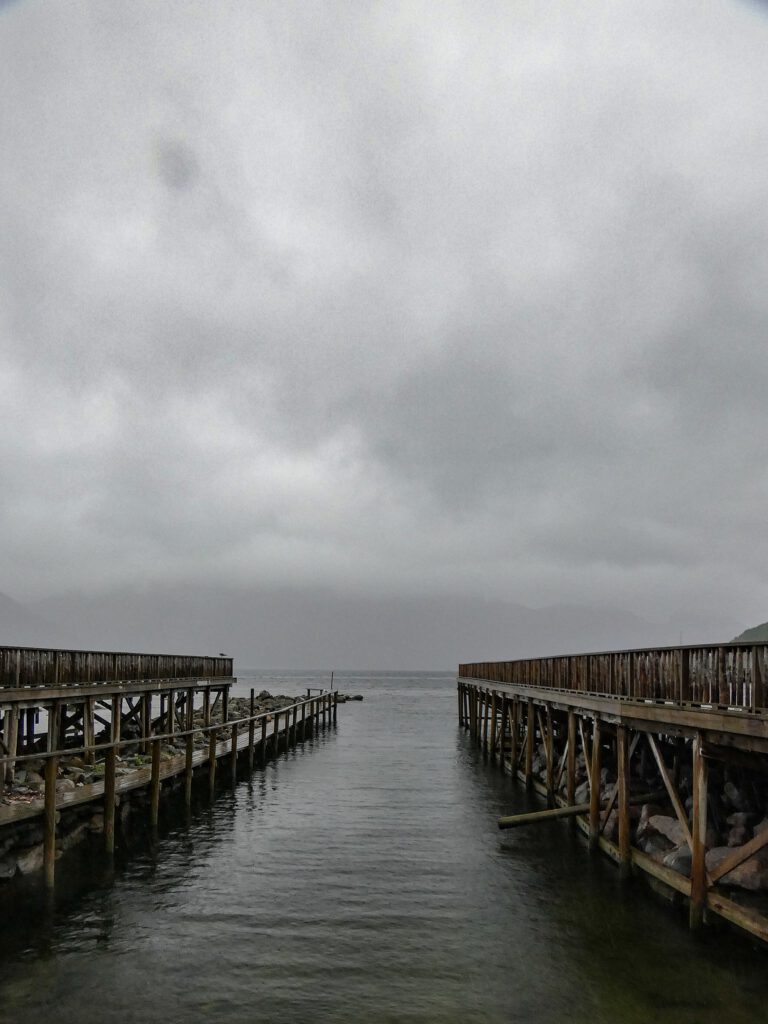 Der neunte Tag hat uns mit viel Wind und noch viel mehr Regen ausgebremst. Wir haben uns am Meer in Mefjordvær niedergelassen. Außer zusehen, wie die nassen Klamotten trocknen, können wir nicht viel machen. Doch, endlich mal in Ruhe lesen – wenn das mal nichts ist!
