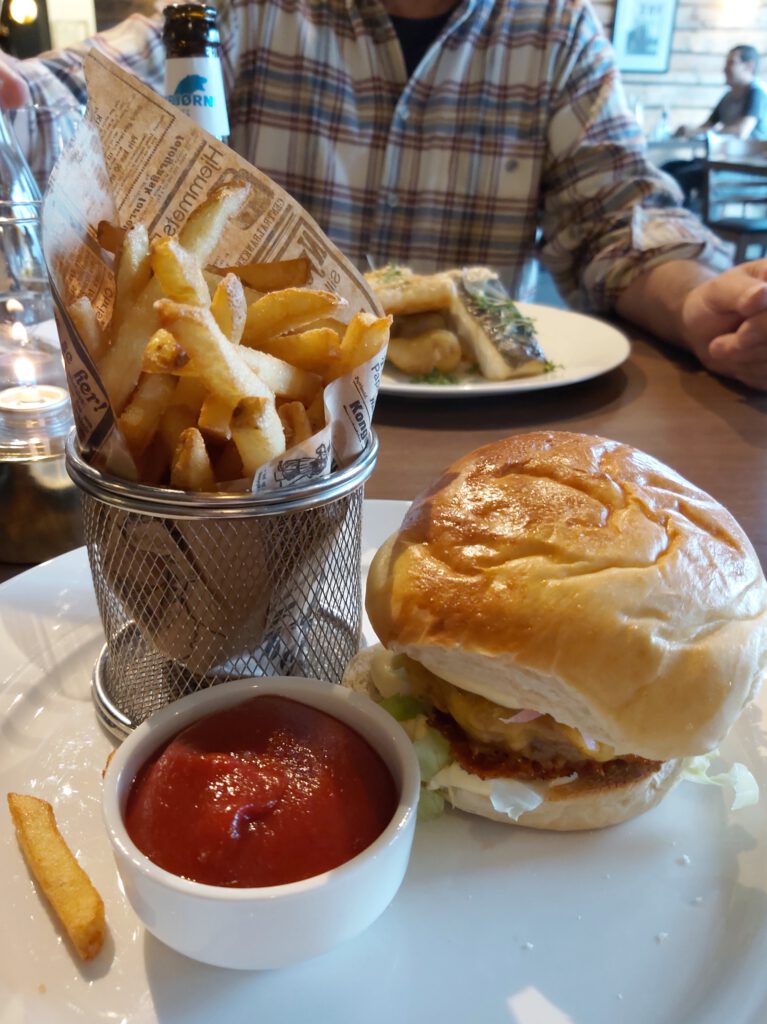 Ja, der Heilbutt war sehr, sehr lecker. Aber auch Doros vegetarischer Burger war super! Ich wette bei einer Blindverkostung hätten viele nicht bemerkt, dass es ein vegetarisches Paddy ist – Geschmack und Konsistenz einfach super. Die Preise wie auch in Schweden, für Abendessen incl. nichtalkoholischem Getränk liegen bei etwa 50 € pro Kopf.