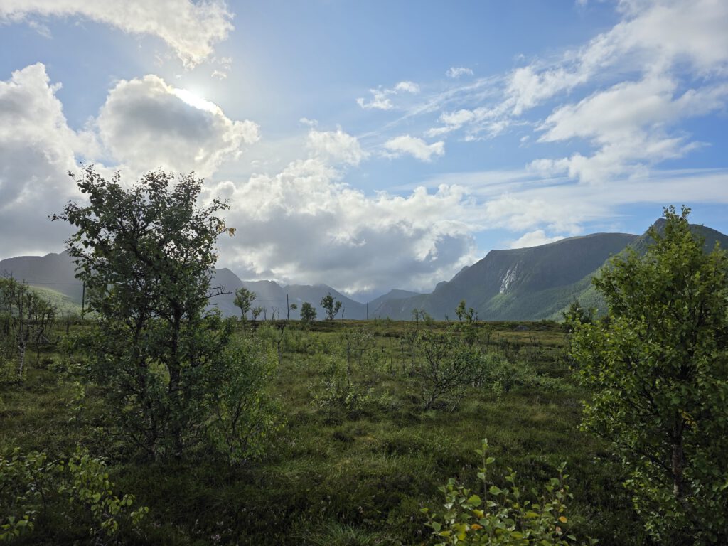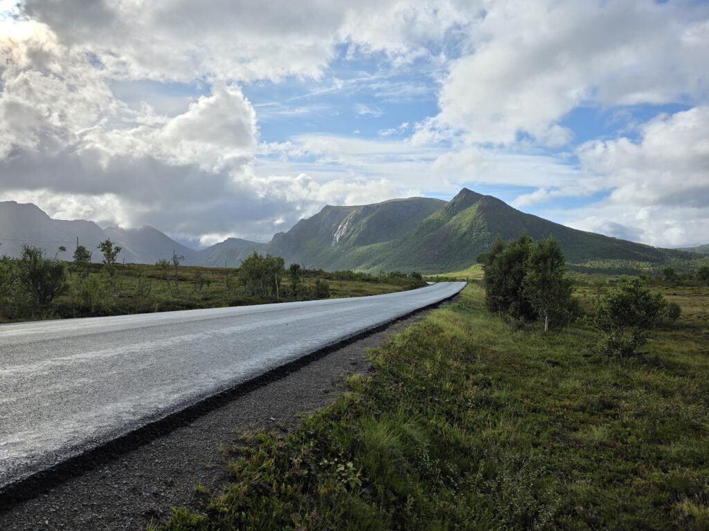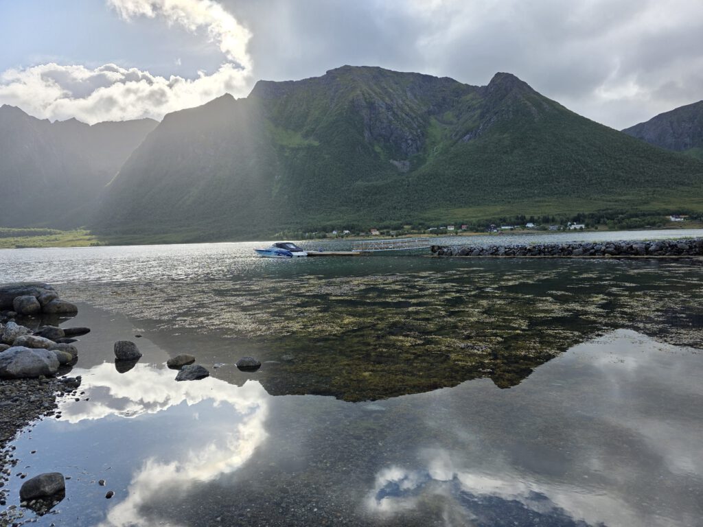 wir standen heute Nacht am Forfjord an der Einmündug des Gårdselva auf einem auch bei Fischern beliebten Rasteplass. Wir fahren die Fv82 weiter Richtung Süden. In der koseligen „Verkstedet“ in Sortland gönnen wir uns eine Fika. Anschließend tauschen wir in einem Sport-Outlet längst vergessenes und deshalb abgeschriebenes Bargeld – Norwegische Kronen getauscht vor vielen Jahren – in gute Bekleidung um.