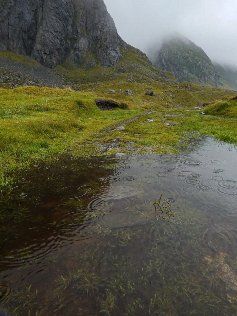 Hier auf den Inseln munkelt man, dass ab morgen die Sonne kommt und den Regen endgültig ablöst. Wir glauben das Gerücht und beschließen, noch ein letztes mal in einen richtig regennassen, monochromen Tag einzutauchen und unsere wasserfeste Kleidung zu fordern.