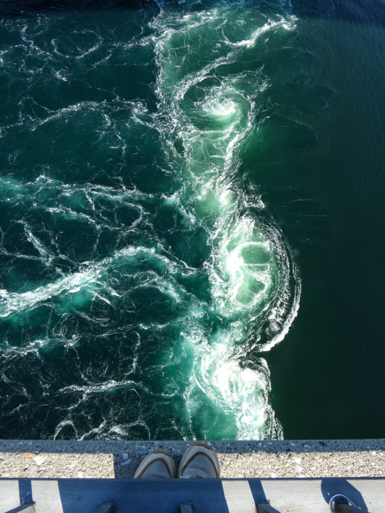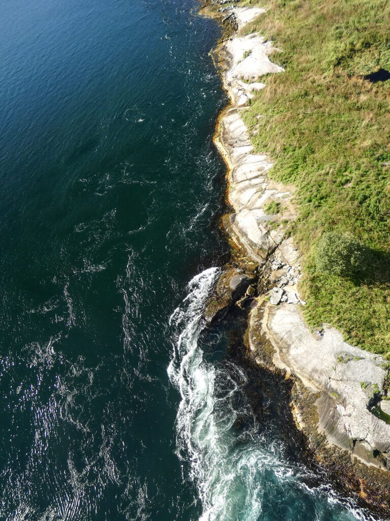 Gleich hinter Bodø haben wir unseren ersten Halt gemacht: am Saltstraumen. Das ist der weltgrößte Malstrom (bitte selber nachlesen, was genau das ist). Beim letzten mal haben wir im strömenden Regen auf ihn geschaut. Diesmal jedoch hat er uns mit strahlendem Sonnenschein erwartet.