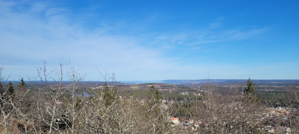 Auf dem weiteren Weg gen Norden hat uns dann ab 11:00 Uhr die Sonne den Tag und die Landschaft verschönert. Etwa 10 km südlich von Jönköping liegt der Tapberg – ein Fels aus Titanmagnetitolivin – der den gleichnamigen Ort um 100 Meter überragt und der mit 343 mNN der höchste Berg in Småland ist. Von oben hat man einen tollen Überblick übers Umland. Belohnt haben wir uns den Weg dorthin mit Leckereien aus einer Konditorei.