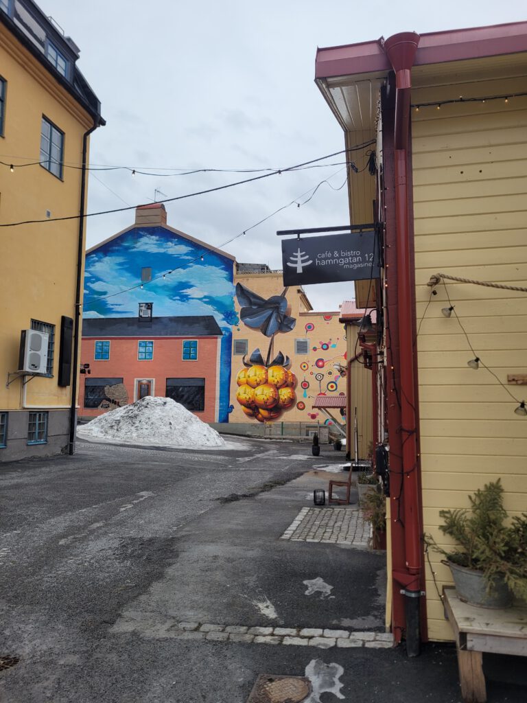 Bei strahlendem Sonnenschein und blauem Himmel sind wir auf dem Inlandsvägen weiter gen Norden gefahren. In Östersund, leider dann wieder ohne Sonnenschein, haben wir einem Espresso House einen Besuch abgestattet. Das hat bei unseren Nordlandreisen schon Tradition – wenn man bis zu drei Teenager an Bord hat, reichen sonst die mobilen Daten der Handyverträge nicht und das freie WLAN im Espresso House versorgt die Kids mit den erforderlichen Downloads. Bei einem Spaziergang haben wir dann noch ein paar Eindrücke mitgenommen.