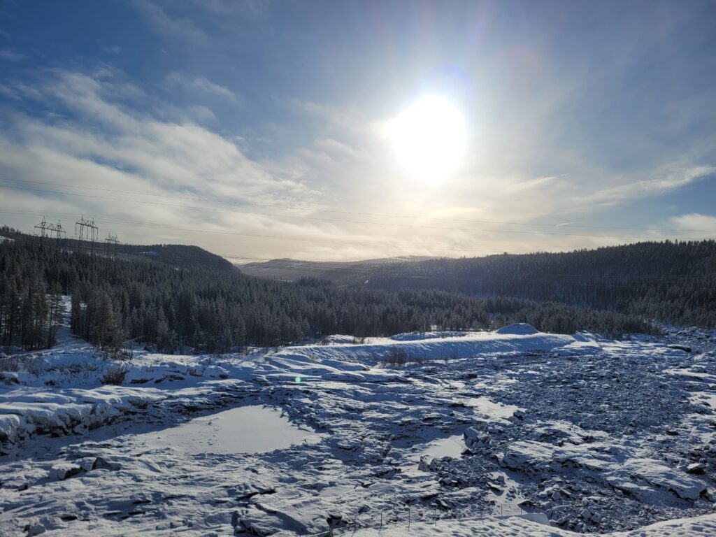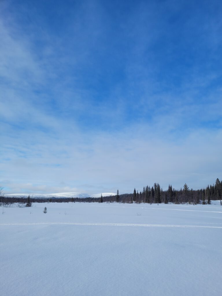 Heute Nacht hat es ein wenig geschneit, so 3-4 cm, jedenfalls waren die Bäume gezuckert und wir sind mit -4° in den Tag gestartet. Die Fahrt begann erneut bei blauem Himmel und Sonnenschein und wieder den Inlandsvägen weiter gen Norden. In Gällivare haben wir im Café By Marléne unsere schon bekannte Fika eingelegt. Einen besonderem Gruß an Claudia: ich hatte Semlor (schwedische Windbeutel). Auch heute endlose Weite vor und hinter uns und das bei Sonnenschein bis zum frühen Nachmittag.