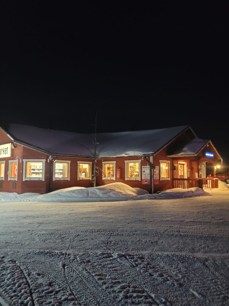 In Vittangi haben wir nochmal vollgetankt – ein nicht voller Tank ist ein leerer Tank – sagt ein gelesener Reiseautor. Wenn ihr denn mal im coop-Markt in Vittangi einkaufen solltet, wundert euch nicht über die nette Kassierin – weil sie eine Freundin in Heidelberg hat, lernt sie mit Duolingo Deutsch. Daher freut sie sich, wenn sie Gelerntes anwenden kann.