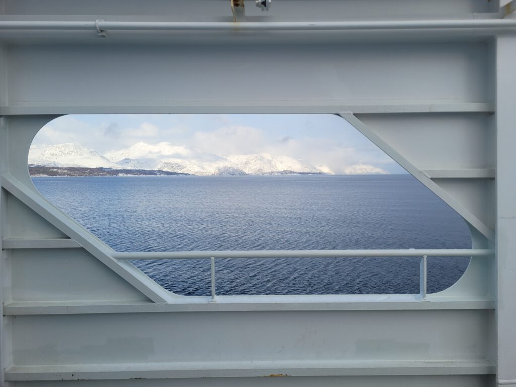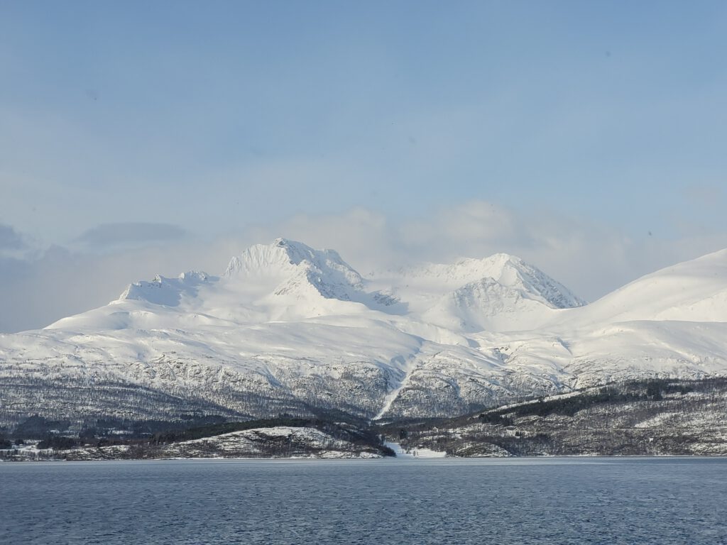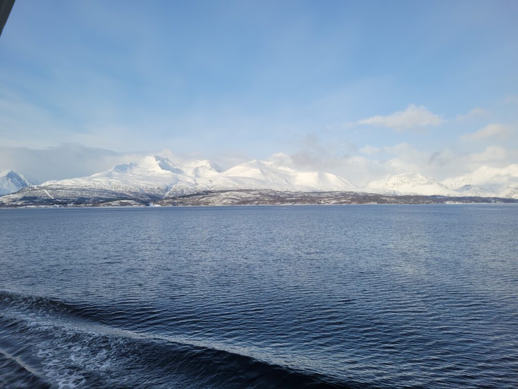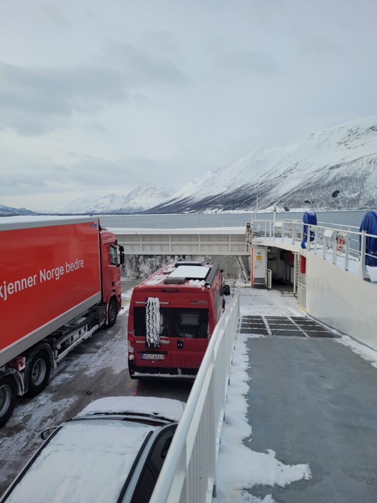 Ziel für heute war Tromsø und es gibt – wie fast immer – mehrere Wege zum Ziel. Wir haben uns kurzfristig entschlossen neben den Tunneln unter bzw. den Brücken über das Wasser diesmal mit Fähren auf dem Wasser zum Ziel zu kommen. Das entschleunigt das Reisen, manchmal, wie heute, mehr als eigentlich geplant. Die erste Fährverbindung von Olderdalen nach Lyngseidet war optimal, kaum am Fährterminal angekommen schon auf die Fähre aufgefahren und los ging es. In Lyngseidet hatten wir dann die Wahl zwischen der längeren Straßenverbindung oder einer zweiten Fährverbindung. Wir entschieden uns für Letzteres nämlich der Fährverbindung von Sensby nach Breidvik. So richtig aufeinander abgestimmt sind die Fährzeiten dann aber doch nicht. In Sensby mussten wir eine Stunde auf die Fähre warten. Den Einwand, dies hätte man im Internet doch nachschauen können, will ich nicht hören!