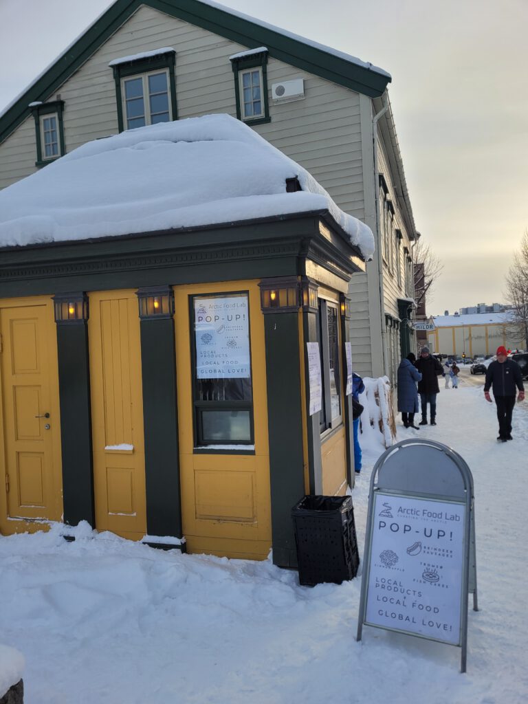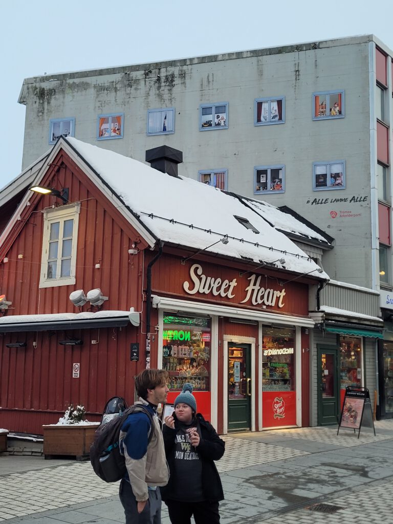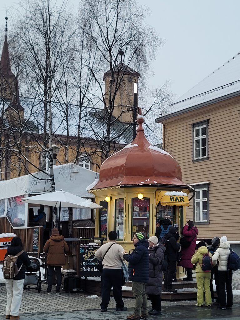 Was wir auf einem Bild auch gleich wiedererkannt haben, ist der bekannte Wurststand in Tromsøs Fußgängerzone 🙂 Habt Iht Euch in die Warteschange gestellt, für ein Original Würstchen?